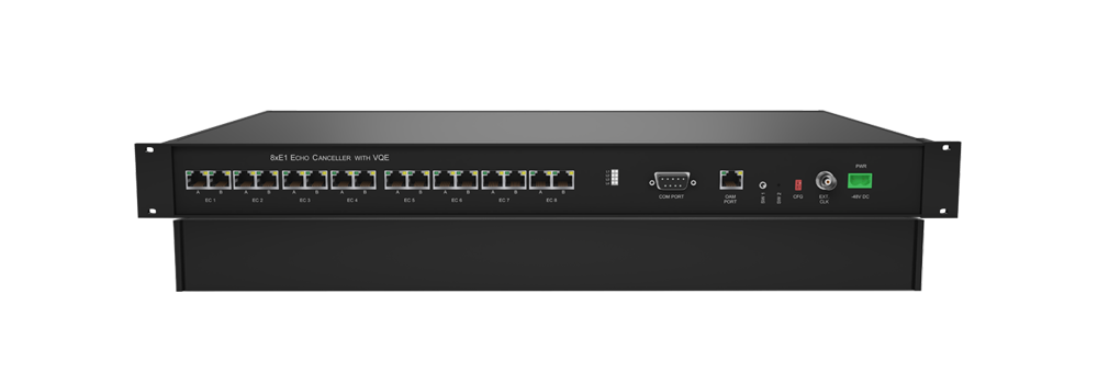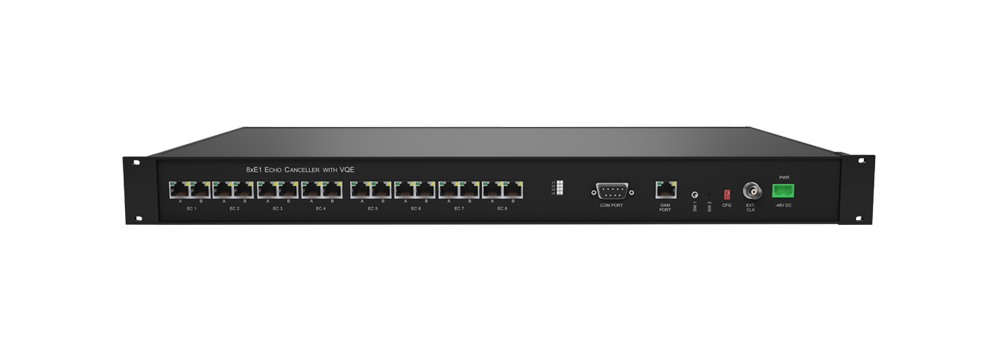 Valiant offers the industry's most compact 8, E1 echo canceller with voice quality enhancement (VQE) solution in a 19-inch, 1U (44mm height) chassis, with echo-tail displacement feature which is user programmable from 0ms. to 896ms. Echo cancellation on each channel is 128ms. bi-directional. The 8, E1 echo canceller solution offers a unique, user definable echo-tail displacement feature which may be programmed by the user, between 0ms. to 896ms. on the return path to cancel echo-tails, both at the near-end and the far-end, in the most demanding network conditions.
