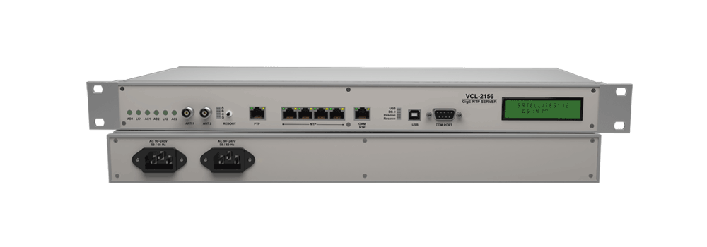 The VCL-2156, GigE NTP Server is designed to provide PTP, NTP Clock that is locked to a GPS / GNSS reference to provide time synchronization to private networks such as Railways and Metro networks, Airports and Air-Traffic Control facilities, Power Utilities, Oil and Gas Utilities, ISPs and Cable TV networks as well as to Campus networks that are required to maintain a complete isolation from public networks for security reasons. VCL-2156 locks to a GPS / GNSS reference to provide an NTP time reference on up to 4 x 10/100/1000BaseT Ethernet Ports which can be segregated to serve separate classes of assets in the network.